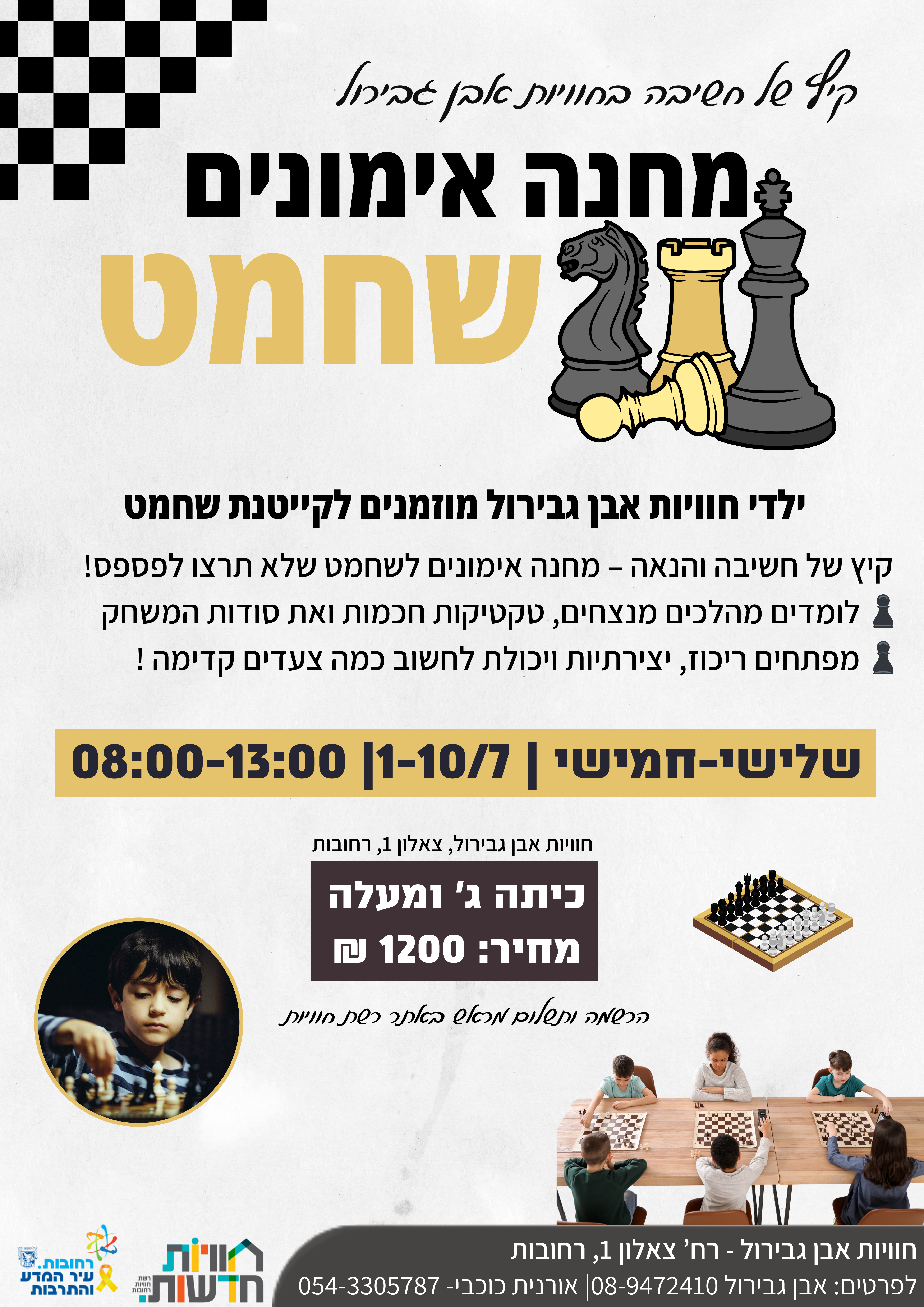 • קייטנת מחנה אימונים- שחמט | מרכז חוויות אבן גבירול