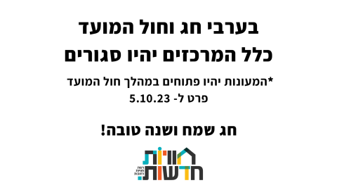 בערבי חג וחול המועד כלל המרכזים יהיו סגורים *המעונות יהיו פתוחים במהלך חול המועד פרט ל 5.10.23