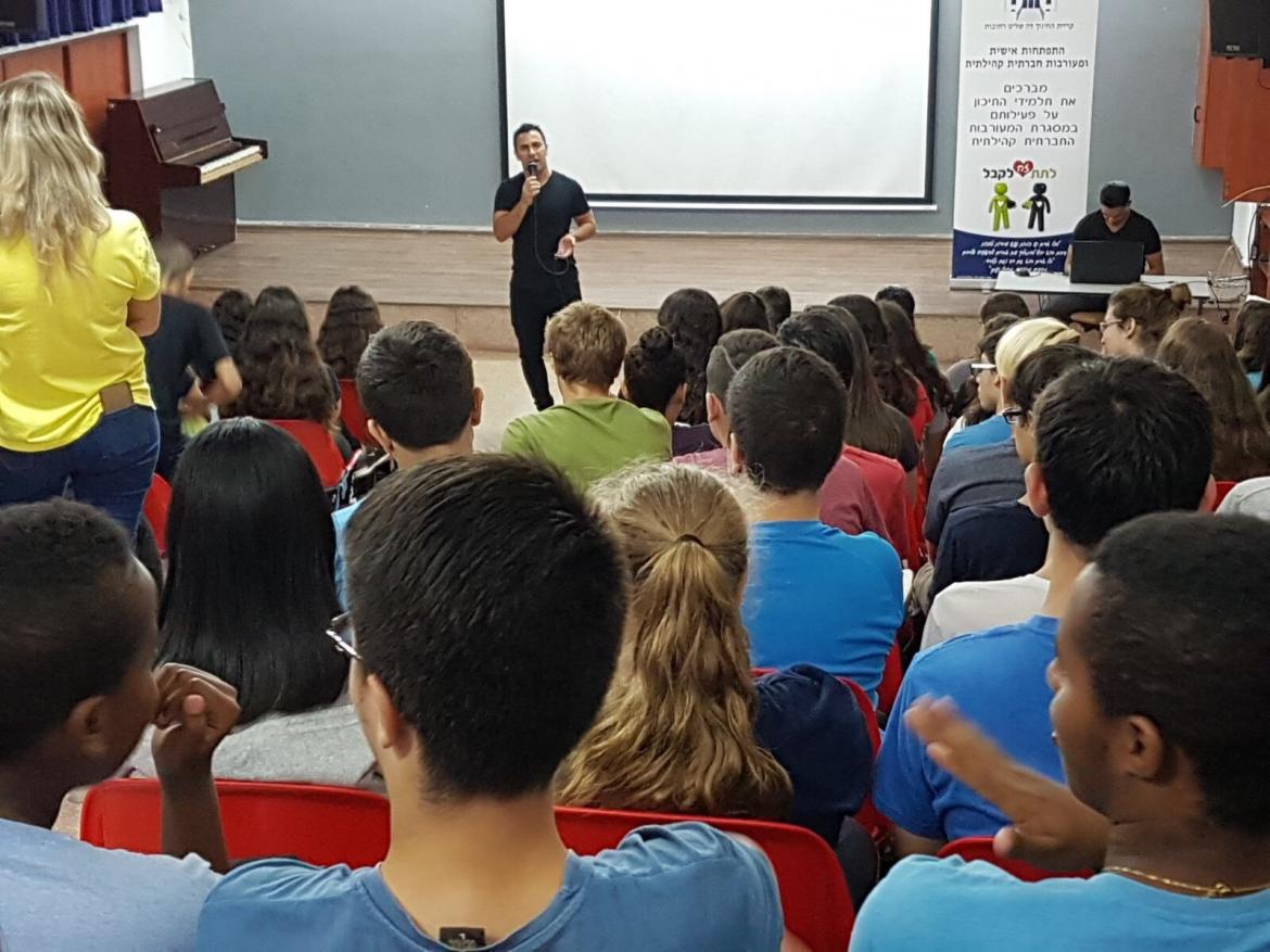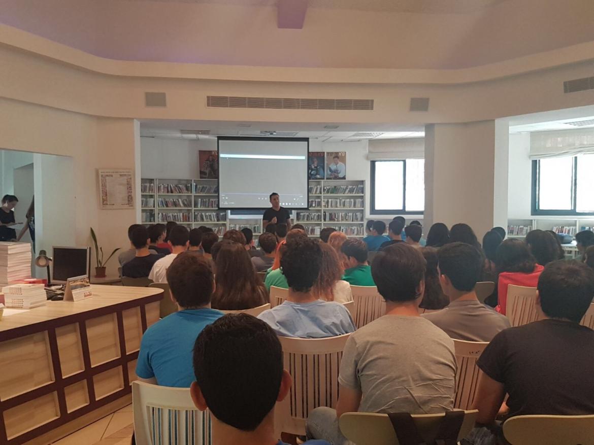 בתמונה: גולן ביטון במפגש עם התלמידים, ויניב מרקוביץ'