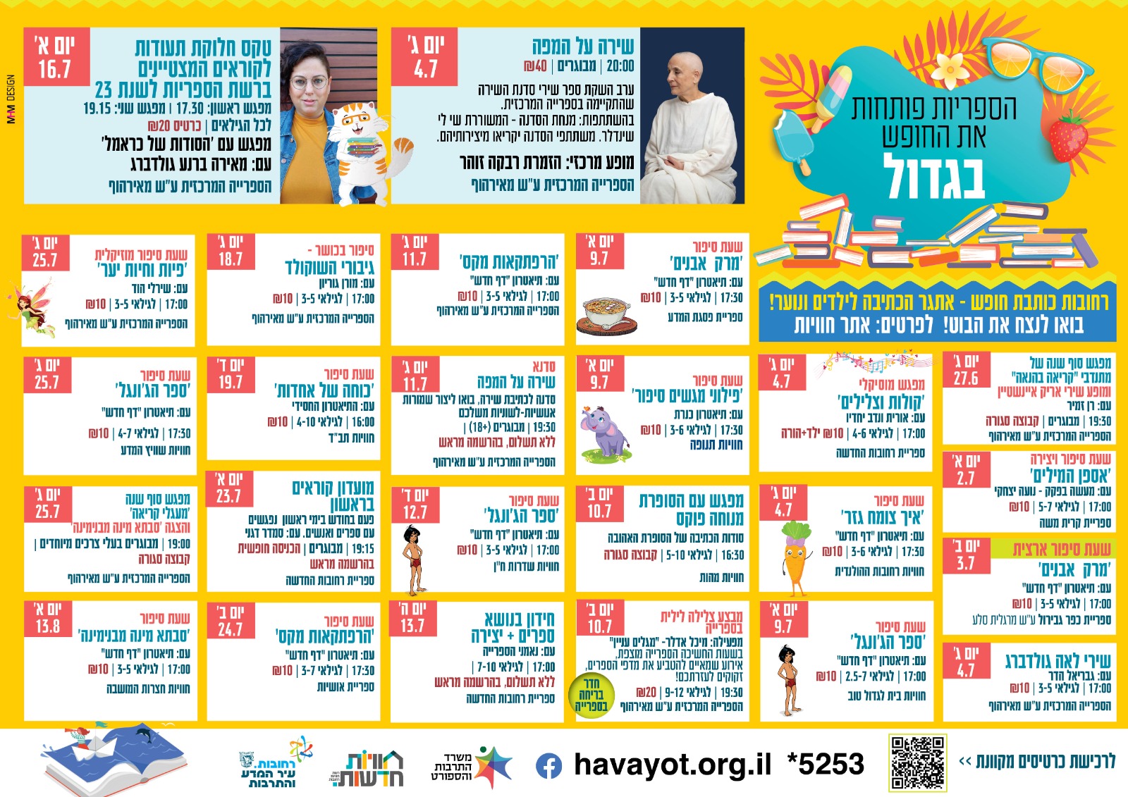 ראשון | 2.7.23 | 17:00 | גילאי 5-7 | 10 ₪
