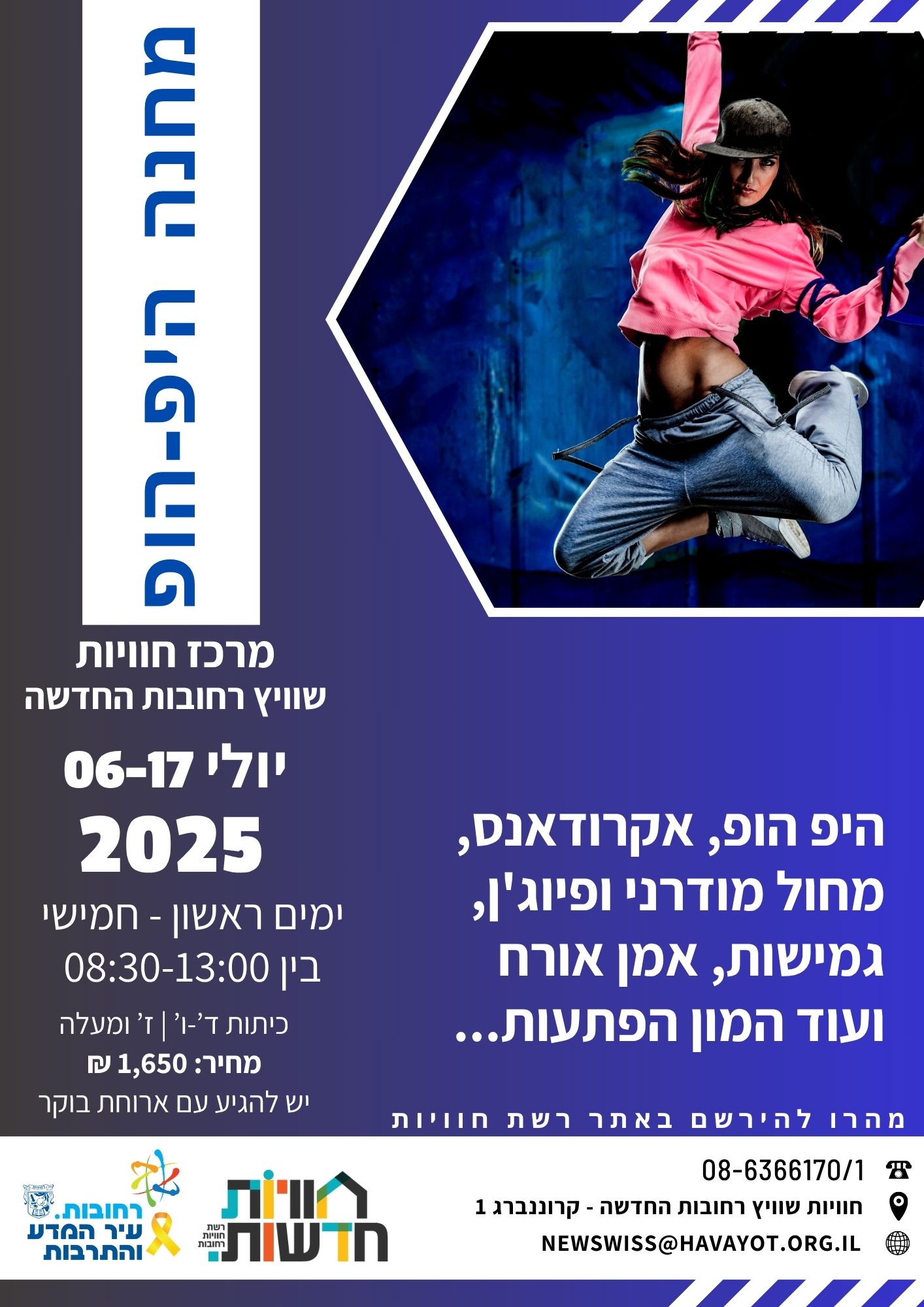 • מחנה היפ הופ כיתות ו ומעלה | מרכז חוויות שוויץ רחובות החדשה