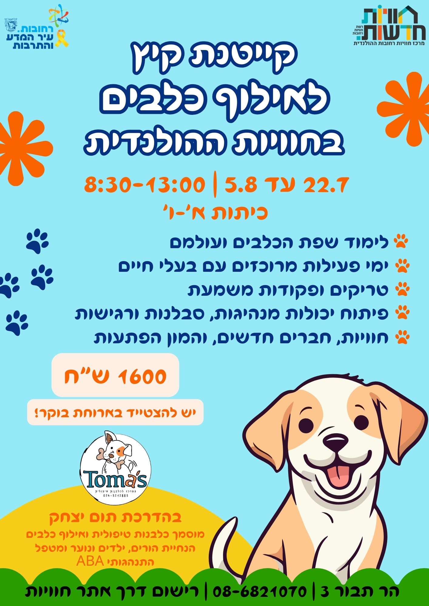 • קייטנת אילוף כלבים | מרכז חוויות ההולנדית