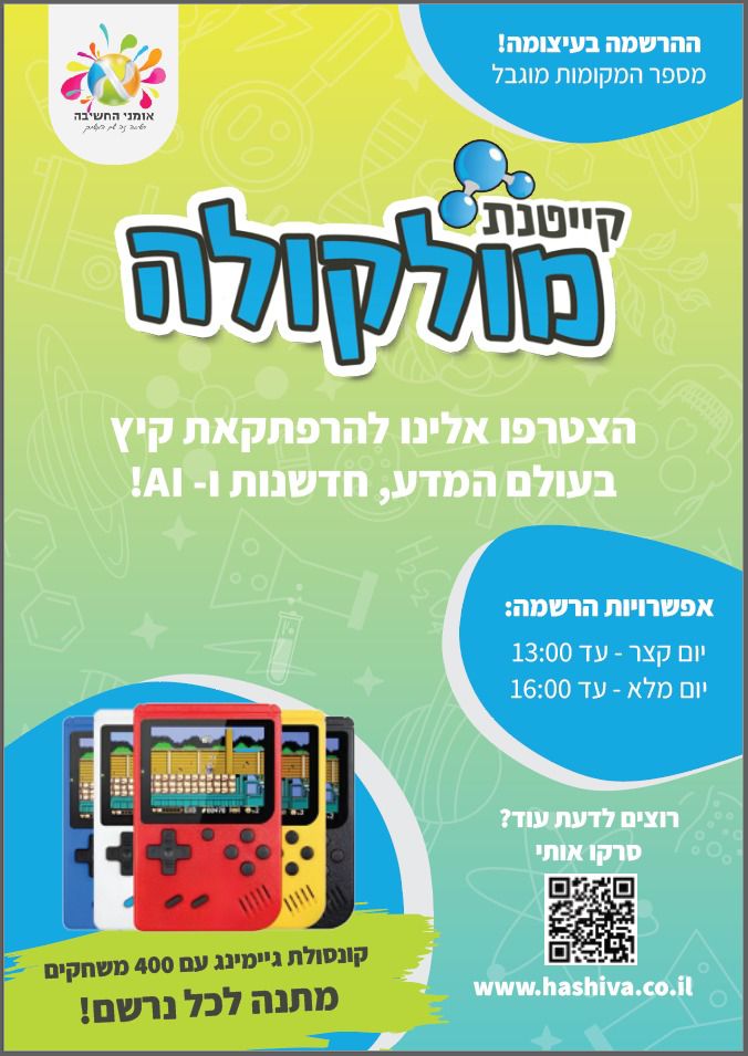 • קייטנת מולקולה עולים ל-א' | מרכז חוויות ההולנדית