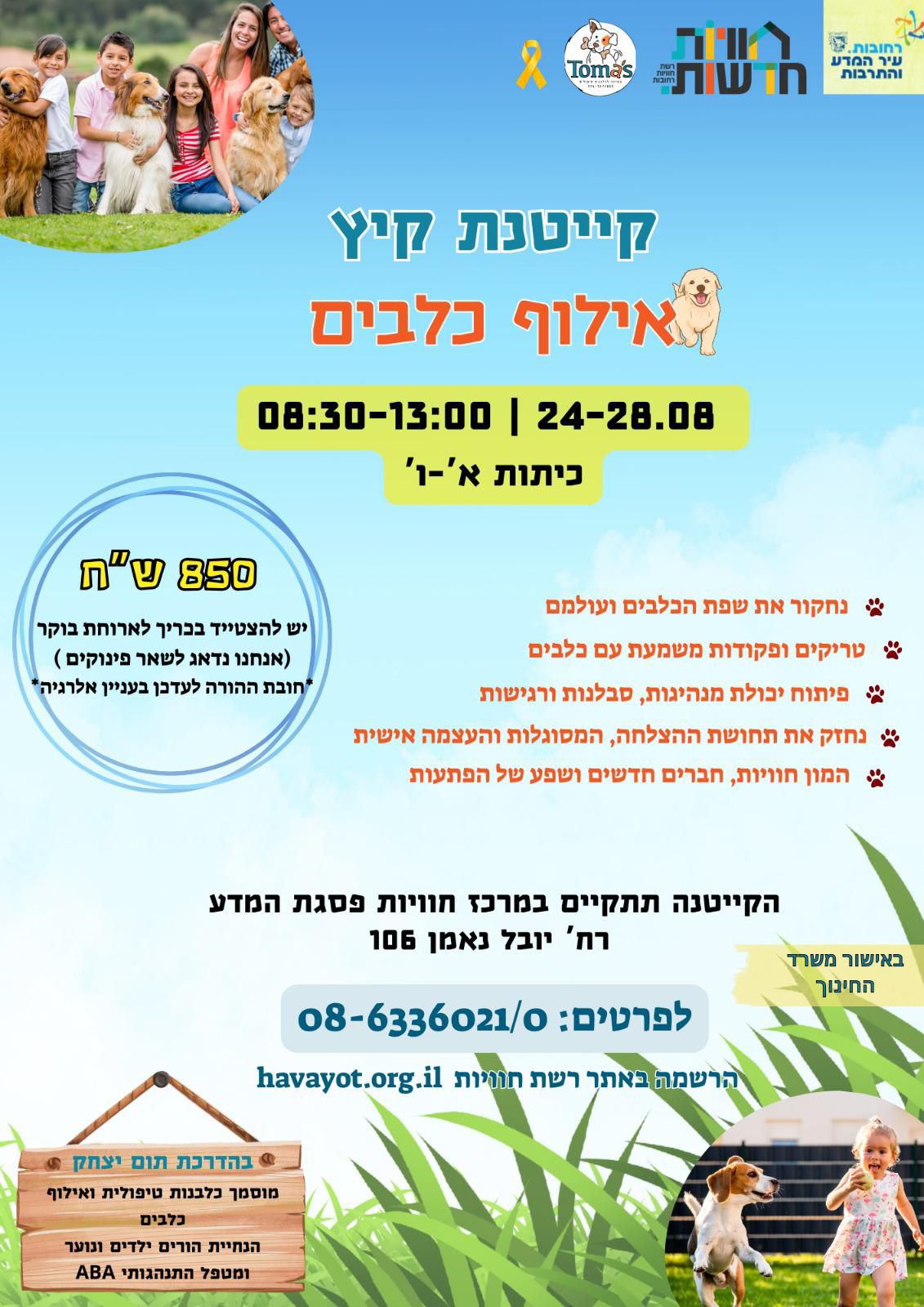• קייטנת אילוף כלבים כיתות א-ג | מרכז חוויות שוויץ רחובות החדשה